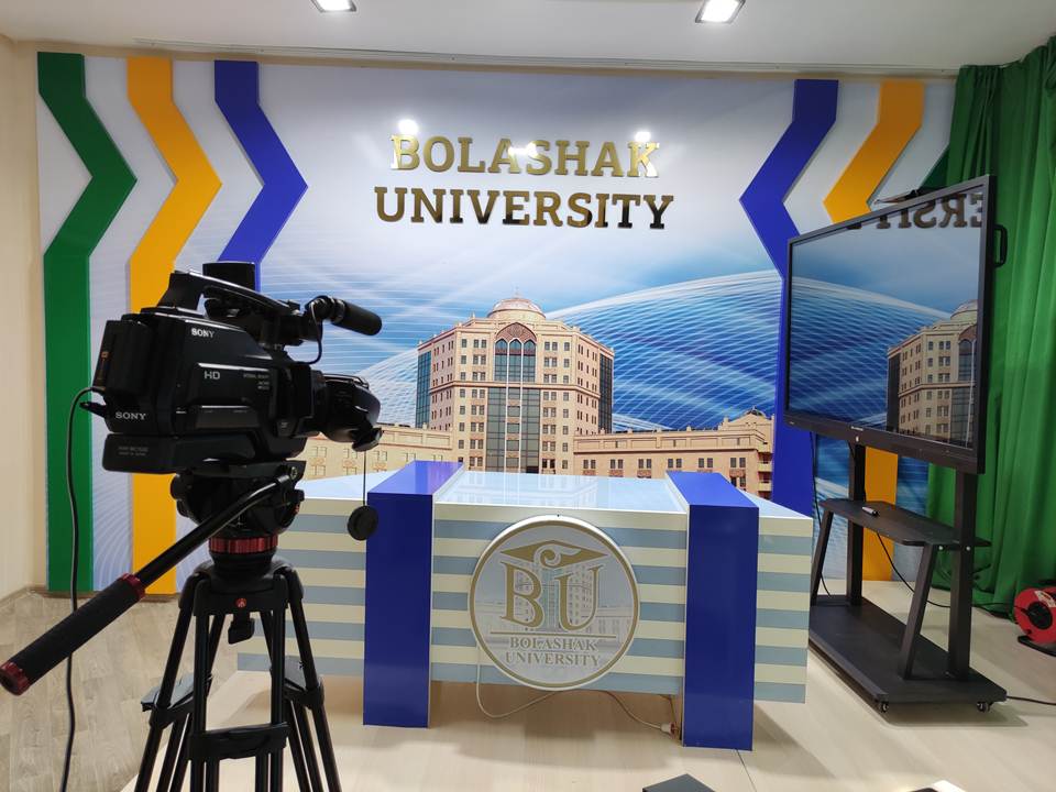 "Болашақ" университеті студиясының мақсаты студенттерді тележурналистка мамандығына баулу, тәжірибе жүзінде болашақ маманды телекамера мен студияға қойылған жарықтың алдында өзін ұстауға, тележүргізушілік қабілетін ашып, студияда жұмыс істеуге машықтандыру. Студияда жүргізуші журналист отыратын тұғырлы станок, станоктың артында декорациялық фон. Қазір фоны "Болашақ" университетінің паспорты іспетті дайындалған декорация. Журналист отыратын станокқа орнатылған стол мен орындық артқы фоннан 1-1,5 метр қашықтықта болуы тиіс. Өйткені фон мен орындықтың арасы камера алған кезде жабысып тұрған көрініс бермеуі керек. Бұл екі ортадағы ашық жер-глубина деп аталады. Сондықтан глубина сақталғаны жөн. Сондай-ақ студиядағы түсірілімге динамика беріп тұратын экран қойылған. Онда жазылымдағы тақырыпқа сай, бейнеқатарлар жүріп тұрады немесе бейнесюжет, слайдтар көрсетіледі.